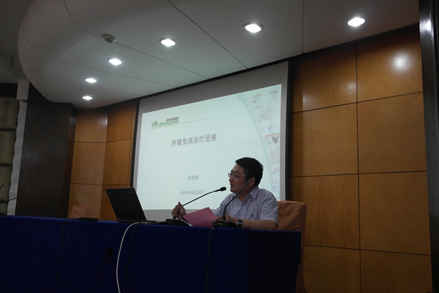赵新燕博士给大家分享了她这些年在肿瘤免疫药物研发方面的心得和体会。她从中国癌症统计数据和治疗现状、什么是肿瘤治疗和如何让肿瘤免疫治疗更有效三个方面展开论述。报告内容深入浅出,引起了参会者极大的兴趣,大家与赵博士进行了热烈而深入的探讨。