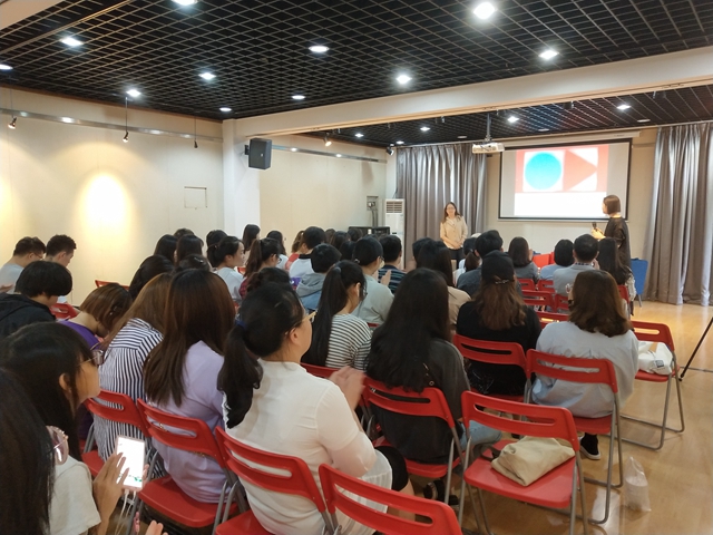 曹教授以互联网、新媒体的发展是否会对平面设计领域产生冲击来引发大家的思考,强调平面设计涵盖的范畴很广,提出设计成功的关键在于观念,观念决定一切。曹教授讲述了她带领学生探访国外杰出艺术家工作室的经历,并且分享了其在AGI会议中的发言内容,着重介绍了她的教学成就。发言内容涉及雕版印刷工作坊,为茶而设计——毕业设计课题,水是生命——公益海报设计工作坊等多个板块。