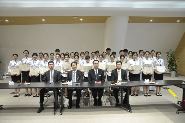 鉴于同学们的优异表现,29日下午,南京国际青年会议酒店特地为同学们举办了欢送会。该酒店总经理黄浩俊先生对同学们的专业技能和工作作风表示赞赏,对大家的辛勤付出表示感谢。