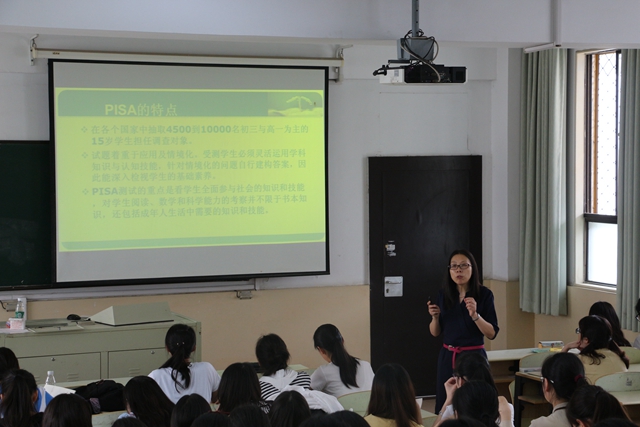 李琳老师的讲座主要包括四个方面的内容:一是教育变革背景的理解与认同,二是中学地理学科的课程改革,三是指向核心素养的教学方式,四是指向核心素养的评价方式。李老师以PISA测试为例,阐述了学生的发展应该注重精神与身体两个方面尤其是素质培养的问题,并指出教育与社会、与人之间是相互影响的,教育的核心素养就是在社会和人中,找到适宜的位置,帮助社会经济发展与政治发展,帮助人类挖掘新的人才发展新的能力观。