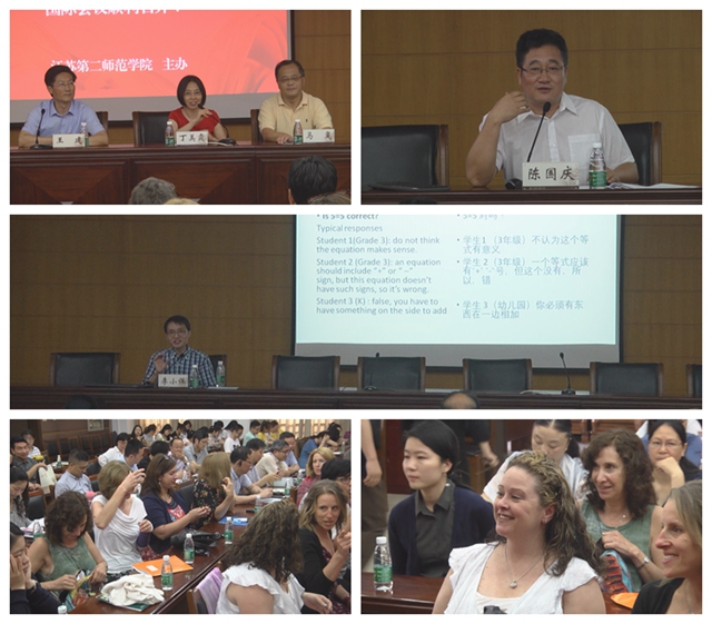 天普大学终身教授丁美霞,北京师范大学课程与教学研究院副院长、博士生导师张春莉,美国威德恩大学副教授李小宝、我校教育科学学院副院长陈国庆围绕会议相关主题作专题学术报告,从不同的角度阐述了不同文化背景下中美对数学教育教学的不同理解,寻求小学数学教学改革的理念、内容与路径选择。