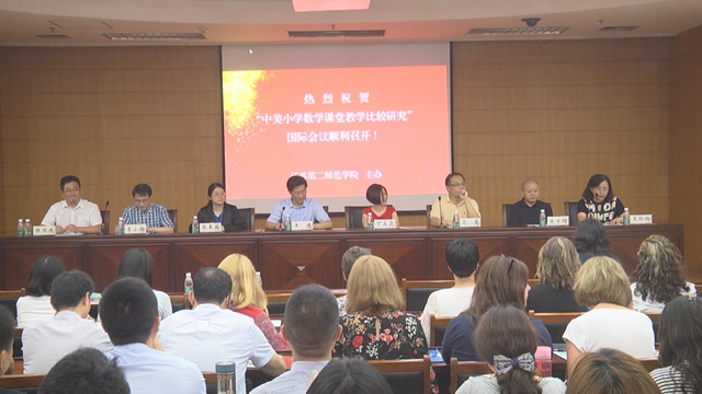 6月19日,由我校主办,教育科学学院、南京市教学研究室承办,中国陶行知研究会智慧教育研究院协办的“中美小学数学课堂教学比较研究国际会议”在我校草场门校区举行。校长王建出席会议。教育科学学院副院长陈国庆、党总支书记王玲玲,南京市教学研究室部门领导,北京师范大学教授,美国天普大学、威得恩大学教授,来自美国宾夕法尼亚州10名小学一线教师,南京市50余名小学数学特级教师以及我校教科院15级部分小学数学专业师范生参加会议。