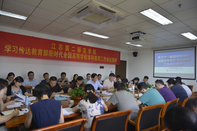 6月25日下午,我校组织学习教育部“新时代全国高等学校本科教育工作”会议精神。校长王建、副校长潘文、各职能部门及二级学院负责人参加会议。会议由潘文主持。