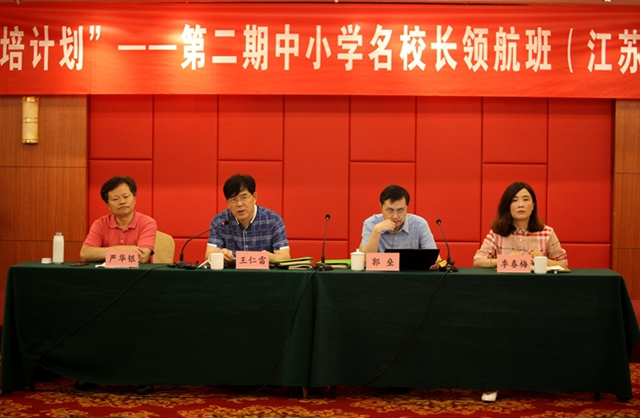 7月4日,我校举行“国培计划”——第二期中小学名校长领航班江苏基地开班典礼。党委书记王仁雷,教育部中小学校长和幼儿园园长国家级项目管理办公室常务副主任郭垒,江苏省师干训中心常务副主任严华银、副主任季春梅以及10位来自全国十个省市的第二期中小学名校长学员出席开班典礼。