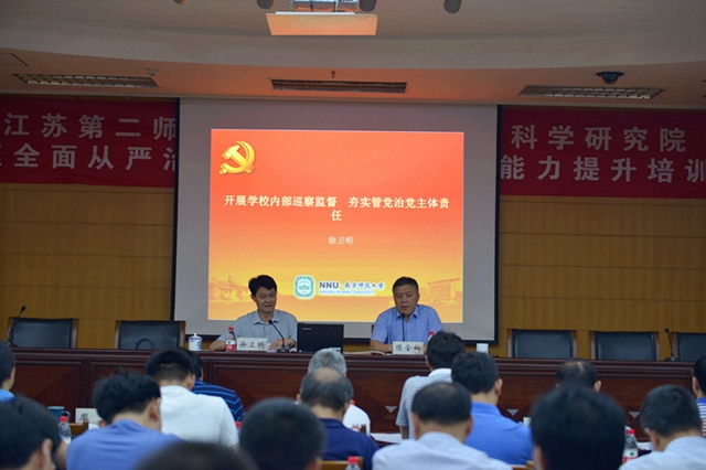 徐卫明作《开展校内巡察监督,压实管党治党责任》的专题报告。报告结合南师大实际情况,就为什么要进行内部巡察、巡察具体内容、巡察的方式方法、巡察后的措施以及巡察工作的纪律等五个方面进行了阐述,为我院将要开展的校内巡察工作提供了丰富的借鉴意义。