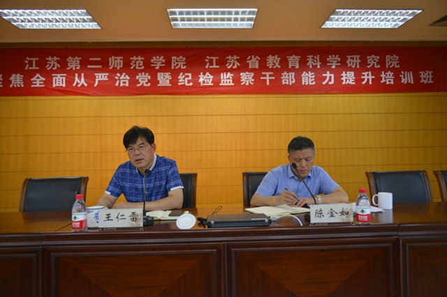 7月4日下午,院纪委在草场门校区举办“聚焦全面从严治党暨纪检监察干部能力提升培训班”。党委书记王仁雷出席开班仪式,南京师范大学纪委书记徐卫明应邀作专题讲座,党委系统职能部门负责人、各总支直属支部书记、全体纪委委员、各二级党组织纪检委员以及纪委办全体工作人员参加本次培训。纪委书记陈金如主持本次培训班开班仪式。