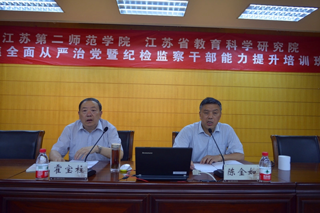 7月6日下午,院纪委“聚焦全面从严治党暨纪检监察干部能力提升培训班”举行第二次培训。江苏省纪委派驻省教育厅纪检组组长、党组成员霍宝柱和院纪委书记陈金如分别作专题报告。党委系统职能部门负责人、各总支直属支部书记、全体纪委委员、各二级党组织纪检委员以及纪委办全体工作人员参加本次培训。陈金如主持本次活动。