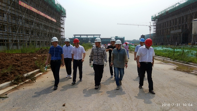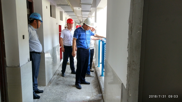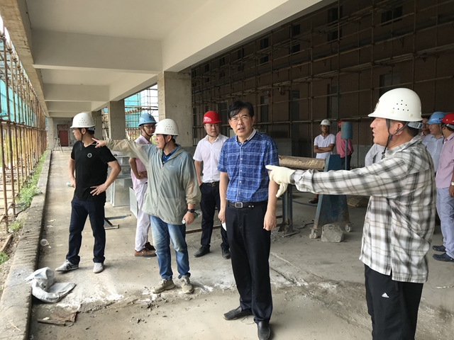 7月31日上午,党委书记王仁雷、副校长潘文赴石湫校区施工现场视察建设进展情况并慰问一线工作人员,党办、基建处、审计处、监理、施工单位相关负责人陪同视察。