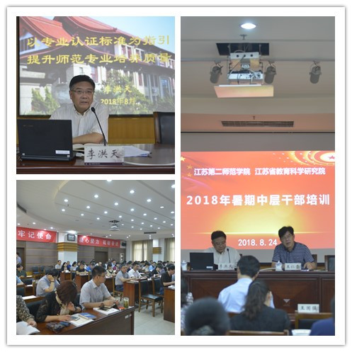 24日上午,江苏教育现代化研究院院长李洪天教授为全体中层干部作了题为《以专业认证标准为指引 提升师范专业培养质量》的报告,深刻阐释了专业认证的基本概念和认证办法的三个特点,并结合我院实际从三个方面解读了认证标准。报告深入浅出,使全体中层干部更清晰地理解了认证以及师范类专业认证的概念,了解了认证办法的三个特点以及认证标准,为我院即将到来的本科教学评估和未来的发展指明了方向。