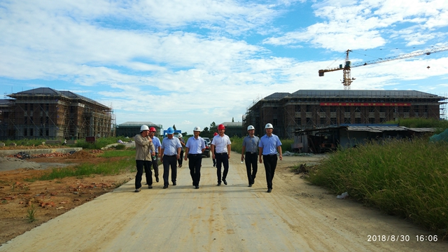 8月30日下午,校长王建、副校长潘文视察石湫校区建设进展情况。党办、校办、基建处、监理和施工单位负责人陪同视察。