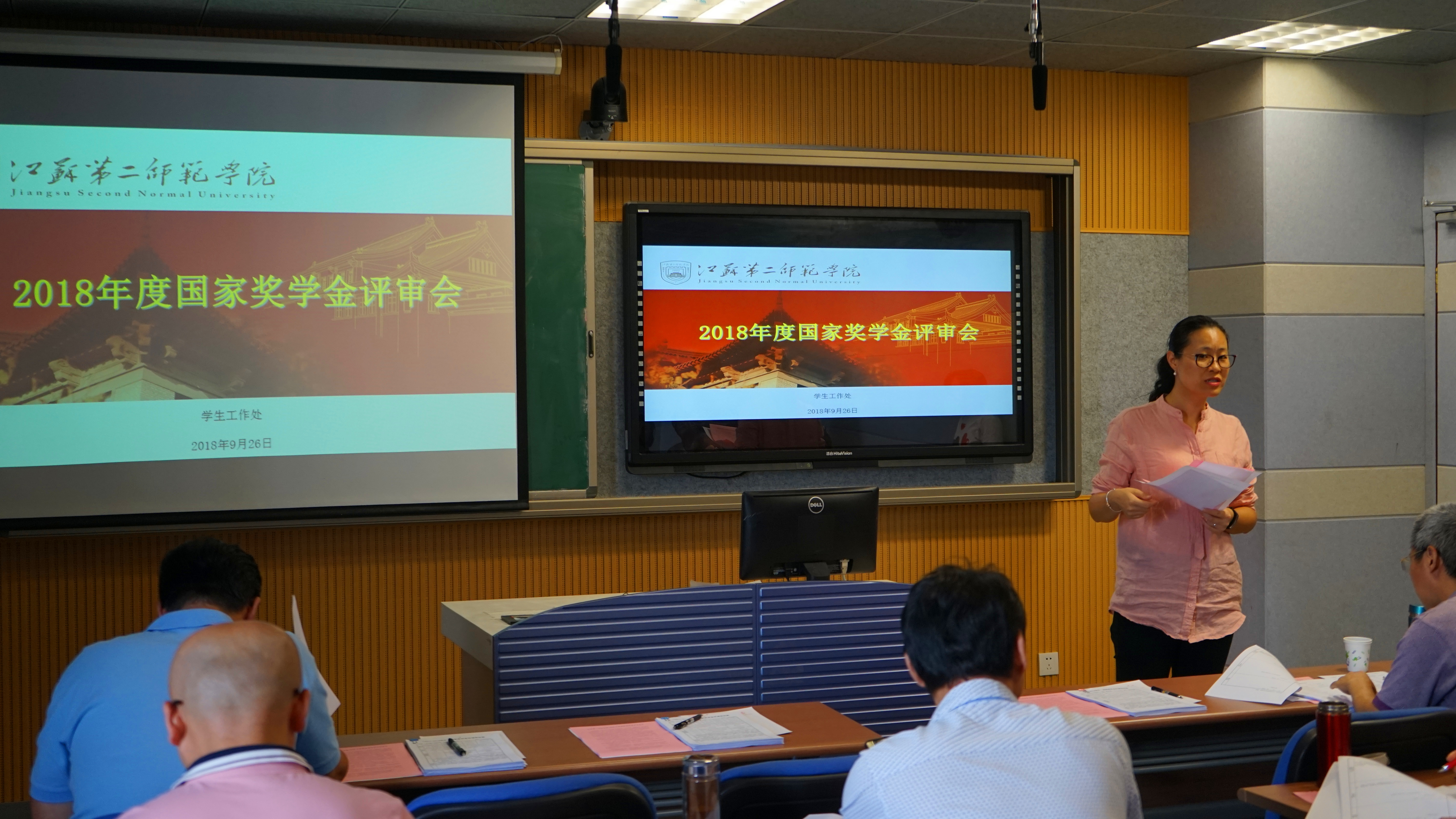 9月26日,我校在草场门校区现代教育技术楼603室召开2018年度国家奖学金评审会。校学生工作指导委员会成员参加评审会,学生工作处处长刘莹主持评审会。