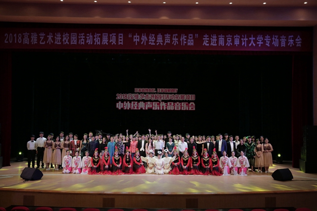 9月26日,我校在南京审计大学审计署审计干部教育学院学术报告厅举办江苏省教育厅、江苏省财政厅2018年高雅艺术进校园活动拓展项目——中外经典声乐作品音乐会。副校长刘继红、南京审计大学副校长裴育应邀观看了本场演出。
