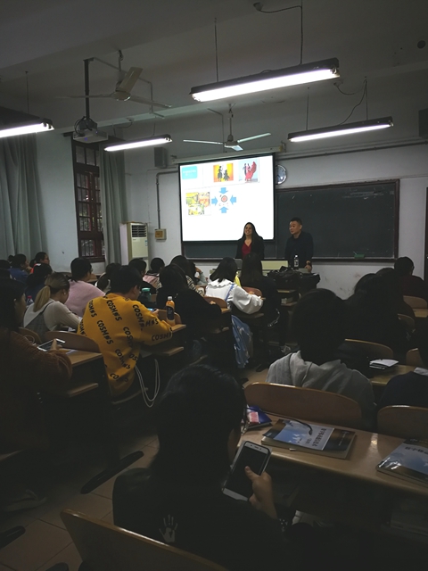 下午4:30,西班牙大学联盟亚洲事务处协调官 Ana和Dani等在草场门校区122教室为我校学生作了一场西班牙文化讲座,并就3+1+1项目和预科项目作了说明,为我校毕业生赴西班牙深造搭建了更好的平台。