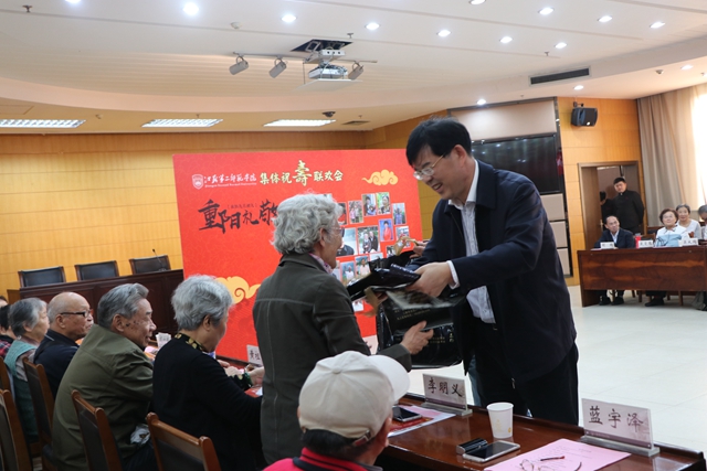 九九重阳节,浓浓敬老情。为让离退休老同志过上一个欢乐祥和的重阳节,10月17日上午,学校为29位年满70周岁、80周岁、90周岁的离退休老同志集体庆祝寿辰。学校党委书记王仁雷、校长王建、副校长刘继红出席祝寿会,刘继红主持祝寿会。