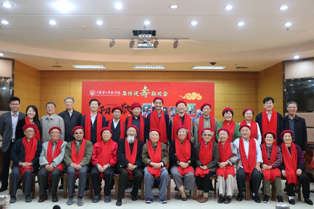 老同志代表钱景渊代表所有老寿星发表感言。他回忆了学校的历史,表达了对学校的感激之情,并表示将积极关心和支持学校的建设与发展,祝愿学校更美好。文学院王雅昕作为学生代表发言,向老教师们送去节日的祝福。离退休协会理事长曹亚民为老寿星们朗诵了由老教师尹家鹏创作的两首贺寿诗。