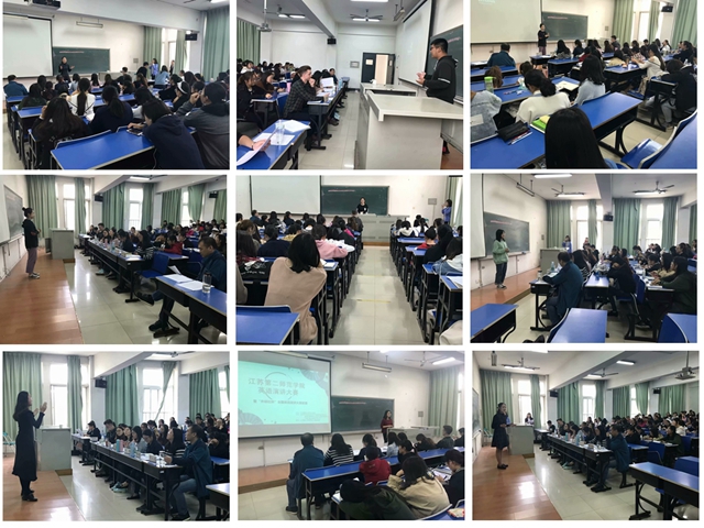 比赛中,选手们在演讲、回答问题和即兴发挥中展现出了较高的水平,他们以清晰的发音、自然的表达、优美的语言和自信的微笑赢得台下阵阵掌声。几位评委肯定了选手们精彩表现,也指出了他们存在的问题。经过三个半小时的角逐,共评出特等奖2名,一等奖6名,二等奖12名,三等奖14名。其中,获得特等奖的严雨萌和戴楠同学将代表学校参加2018“外研社杯”英语演讲江苏赛区的复赛。