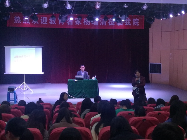 10月31日下午,音乐学院举办“以陶为师四十年”专题讲座,邀请行知教育实验学校校长杨瑞清来校作演讲。院党总支书记蒋向红主持活动,副院长周振亚、王春燕出席,全体老师、17级和18级学生参加活动。