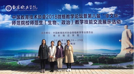 11月2日,中国教育技术协会2018微格教学论坛暨第八届“华文杯”师范院校师范生(生物、政治)教学技能大赛传来消息,我校生化学院四位参赛同学又一次取得了优异成绩。其中,在教学设计奖项中,涂昕昀同学荣获特等奖,张佳燕、袁昊和李璨三位同学均获得一等奖;在教学技能奖项中,李璨同学荣获特等奖,涂昕昀、张佳燕、袁昊三位同学分获得一、二、三等奖。共计获得特等奖两个、一等奖四个、二等奖一个、三等奖一个,为省内师范院校表现上佳的代表队。