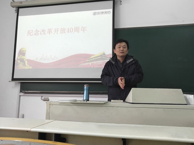 11月8日下午,城环学院在小行校区举办青马工程初级班首场讲座——庆祝改革开放四十周年,该院党总支书记徐孝彬主讲,2018级全体新生干部听取讲座。