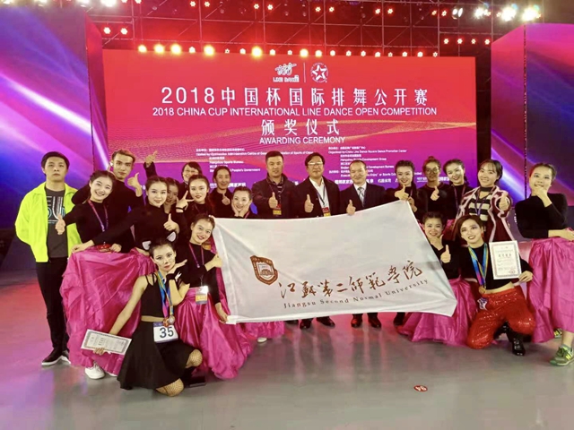 我校以团体一等奖的好成绩顺利晋级国际公开赛,代表江苏参赛,获集体自选曲目第三名、单人中级第五名、单人高级第六名的好成绩。