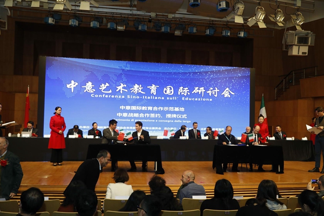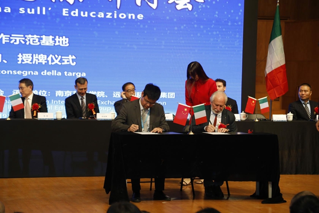 为贯彻习近平总书记在全国教育大会上的讲话精神,大力推进教育改革创新,实现“一带一路”大背景下“教育兴国,教育强国”的伟大目标,探索中意国际教育交流与合作的新模式,11月9日,中国教育国际交流协会未来教育研究专委会在南京艺术学院举办中意艺术教育国际研讨会。教育部、江苏省教育厅等部门领导,意大利领事馆携20余所意大利高校的校领导和专家出席大会。我校副校长刘贵友代表学校参会,并与意大利威尼斯美术学院和意大利卡利亚里音乐学院签署教育合作协议。