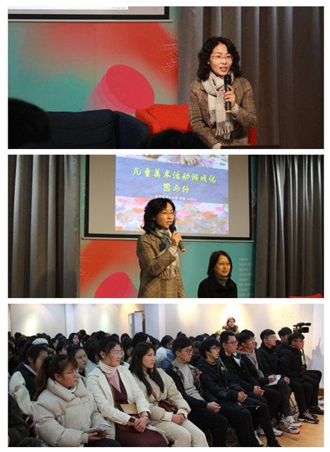 12月19日下午,美术学院特邀南京实验幼儿园科睿园园长郑梅来校,在艺体楼五楼艺术交流中心举行题为《儿童体验式美术教学的实践》的讲座。美术学院副院长陶金鸿主持活动,该院2017级、2018级美术学专业的全体同学参加活动。