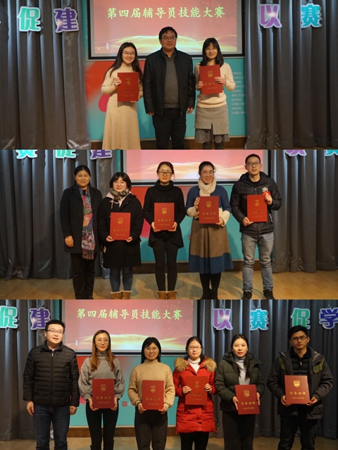 经过三个小时的激烈角逐和评委们的综合评定,本届辅导员技能大赛最终决出一等奖2名,二等奖4名,三等奖6名,刘亚宁、戴晓凤老师获得一等奖,潘楠等10位老师分获二、三等奖。