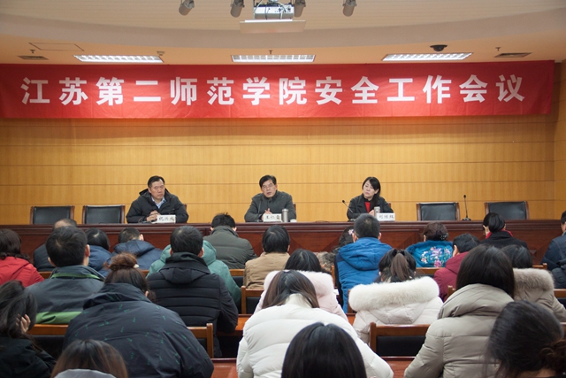 为进一步强化平安校园建设,部署近期安全工作任务,确保今冬明春校园安全稳定,1月4日,我校在草场门校区教科研楼511报告厅召开安全工作会议,党委书记王仁雷,党委副书记、副校长刘继红出席会议,副校长祝兴成主持会议。学工处、教务处、保卫处、后勤处、资产经营总公司负责人及各二级学院党总支书记、副书记、辅导员共计50余人参加。