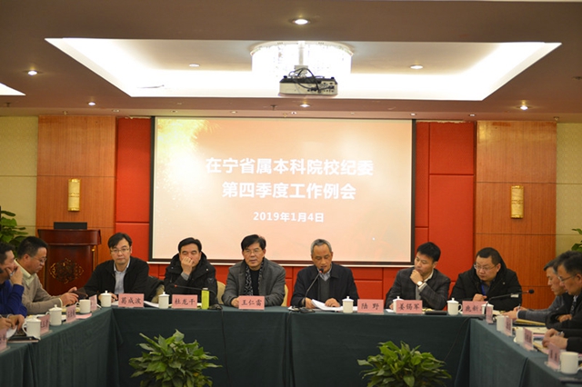 1月4日上午,省纪委在我院草场门校区百草园报告厅召开在宁省属本科院校纪委第四季度工作例会。省纪委七室主任陆野、副主任杜龙干等省纪委七室领导及在宁省属本科院校、省人民医院、省中医院的纪委书记、纪委副书记及相关纪检工作人员参加会议。我院党委书记王仁雷出席会议,院纪委书记陈金如主持会议,纪委办全体工作人员参加会议。