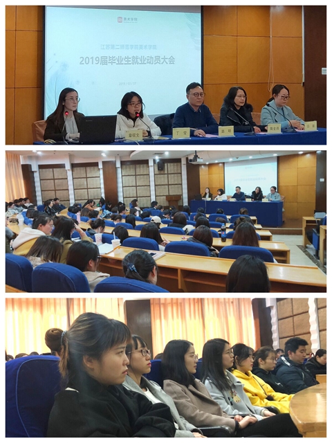阳春三月,2019届毕业生又进入了紧张忙碌的春招求职季,为更好地帮助同学们了解就业形势、树立正确的就业观,引导同学们合理择业,3月7日下午,美术学院举行2019届毕业生就业动员大会。该院副院长路明、党总支书记丁莹、副院长陶金鸿、学工办主任白丽出席大会,就业专员章砚文主持大会。