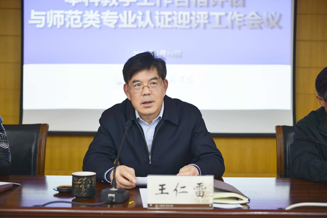 会上,王仁雷发表讲话。他指出,本科教学工作合格评估与师范类专业认证是当前全校的重要工作,本次会议是在贯彻落实新一届党代会精神、全面启动“136”五年发展战略的关键时期召开的一次十分重要的会议。针对评估认证迎评工作,王仁雷提出三点要求:一是思想再统一、认识再提高,深刻把握迎评工作的内涵意义。要从事关根本的高度、全局的广度和未来的深度进一步认识和做好迎评工作的重要性。二是重点再突出、目标再明确,加快完善做好各项迎评工作。在指标研读上要突出“深”和“透”;在项目打造上要突出“特”和“强”;在迎评开展上要突出“活”和“强”;在工作机制上要突出“全”和“早”。三是任务再细化、责任再落实,着力构建迎评工作的保障体系。要构建横向到边、纵向到底的责任落实体系;构建目标倒逼责任、时限倒逼进度的效率管理体系;构建科学考核、精准督查的工作评价体系。
