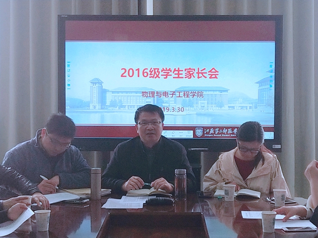 3月30日下午,物电学院在小行校区实验楼402会议室召开2016级部分学生家长会,副院长高英杰、学工办副主任胡丹以及辅导员、班主任出席会议。来自贵州、重庆、河南等不同省市的12位学生的家长参加会议。