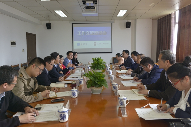 4月19日上午,新乡学院副校长刘翔一行7人到我校,就目标管理、绩效分配等有关问题进行调研交流。校长王建以及教务处、科研处、人事处、学工处等相关负责人出席座谈会。