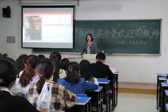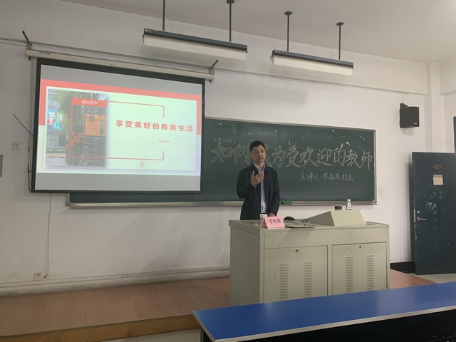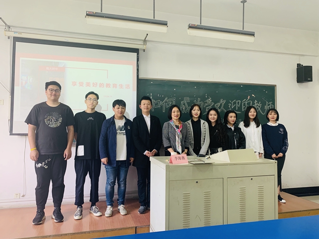 4月19日下午,经法学院邀请鼓楼区政治学科带头人、南京大学附属中学校长李海燕来校作题为“如何成为学校和学生欢迎的政治教师”的讲座。院长孙爱军主持讲座,16级思想政治教育专业学生参加。