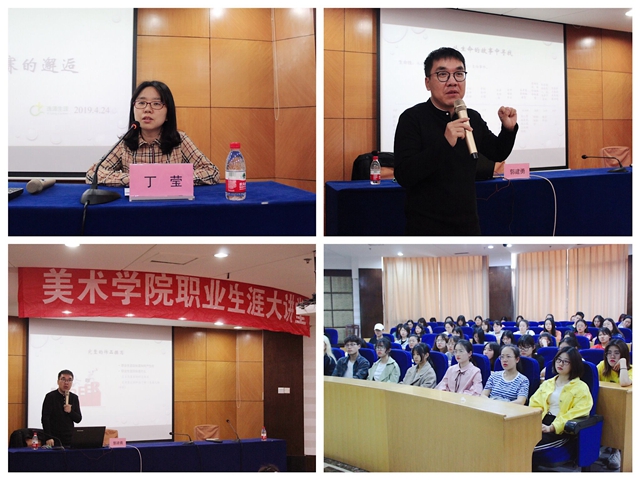 美术学院举办“职业生涯大讲堂”系列讲座,旨在引导青年学生学会建立职业生涯规划观念,提高创新能力、实践能力和就业能力,增强社会竞争力。