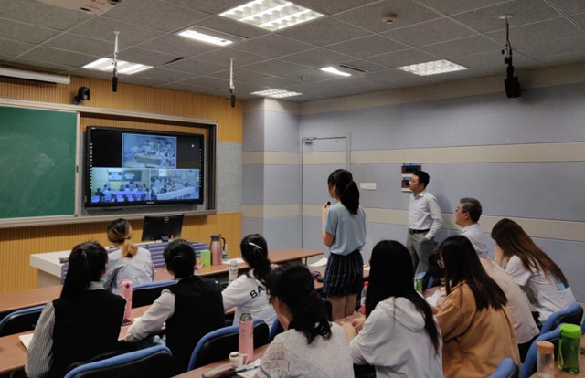 5月16日上午,在草场门校区现代教育技术楼603教室,我校生化学院、教育科学学院与南京市洪武北路小学、成贤街小学进行了三校课堂在线直播互动活动。我校分会场由教育科学学院副院长陈国庆主持,生化学院副院长花书贵、林洁老师出席活动。2016级小学教育(科学)班全体同学全程观摩了课程直播。洪武路小学展示的公开课是“花架的制作”,成贤街小学展示的是“冷热与温度”。课程结束后,江苏省小学科学教研员卢新祁老师对两节公开课进行了在线点评,我校胡玮、周楷婷两位同学在线发表了听课感受。