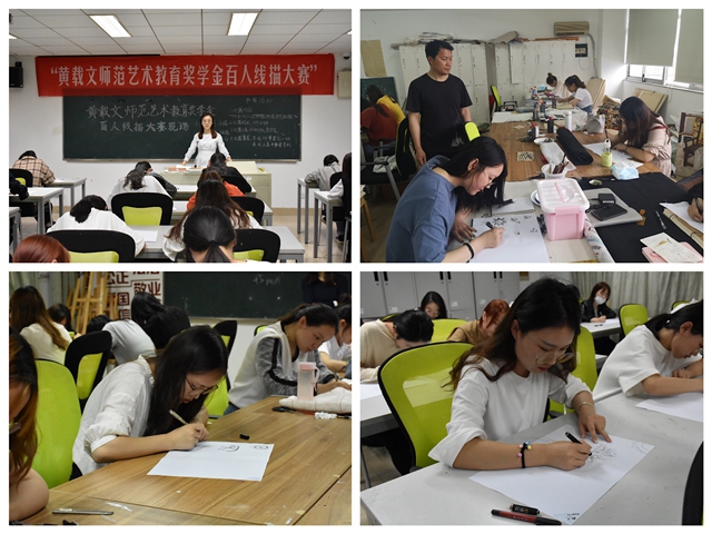 “黄载文师范艺术教育奖学金”由美术学院退休教师黄载文教授捐资设立。本次百人线描大赛主要考察师范生的美育基础技能,要求参赛学生在短时间内用流利的线条完整描绘各种装饰造型。举办此次活动旨在以赛促学,帮助美术师范生提高教师教学技能与手绘能力。