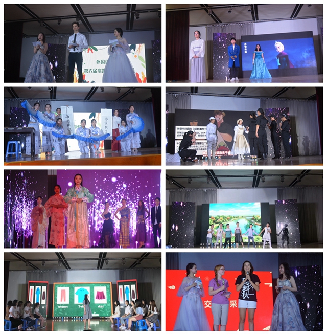 大会在外教和学生联袂的全英文主持下,紧紧围绕该院高素质、应用型、国际化外语专门人才的目标定位和工作重心,以“Flying Youth,Flying Dream”为主题,通过内容丰富精彩、形式活泼多样的节目,向与会观众全面展示了该院实践育人工作成果和理念。多国语言合唱《Let it Go》、日语短剧和俄语诗朗诵汇集了中、英、日、法、德、俄六种语言,充分展示了学院兼收并蓄的外语文化和学子广博深厚的语言素养;英语课本剧《A Happy Day》和书乐舞等节目全方位展示了该院英语(师范)专业学生良好的综合素质和厚实的英语学科教学能力,也进一步聚焦了学院改革教师教育模式所取得的阶段性成果;卓越教师培养项目展示诠释了学院“职前职后融通、实践贯通全程”的一体化卓越人才培养理念;多国服装秀展示出外院学子对异域文化的领悟能力和表达能力。大会还表彰了本学年实践教学系列活动中涌现出来的优秀师生和优秀班集体,并颁发“自强”奖学金。