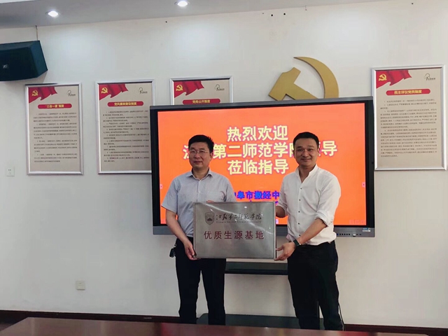 为提前对接2019年度招生宣传工作、提前了解生源地情况,5月23日,外国语学院党总支副书记黄晓波、校招生办公室主任余鑫等一行4人赴如皋市搬经中学进行生源地授牌和招生政策宣讲。该校校长陈宽林及高三教研组主任李传庆等校友给予了工作接待。