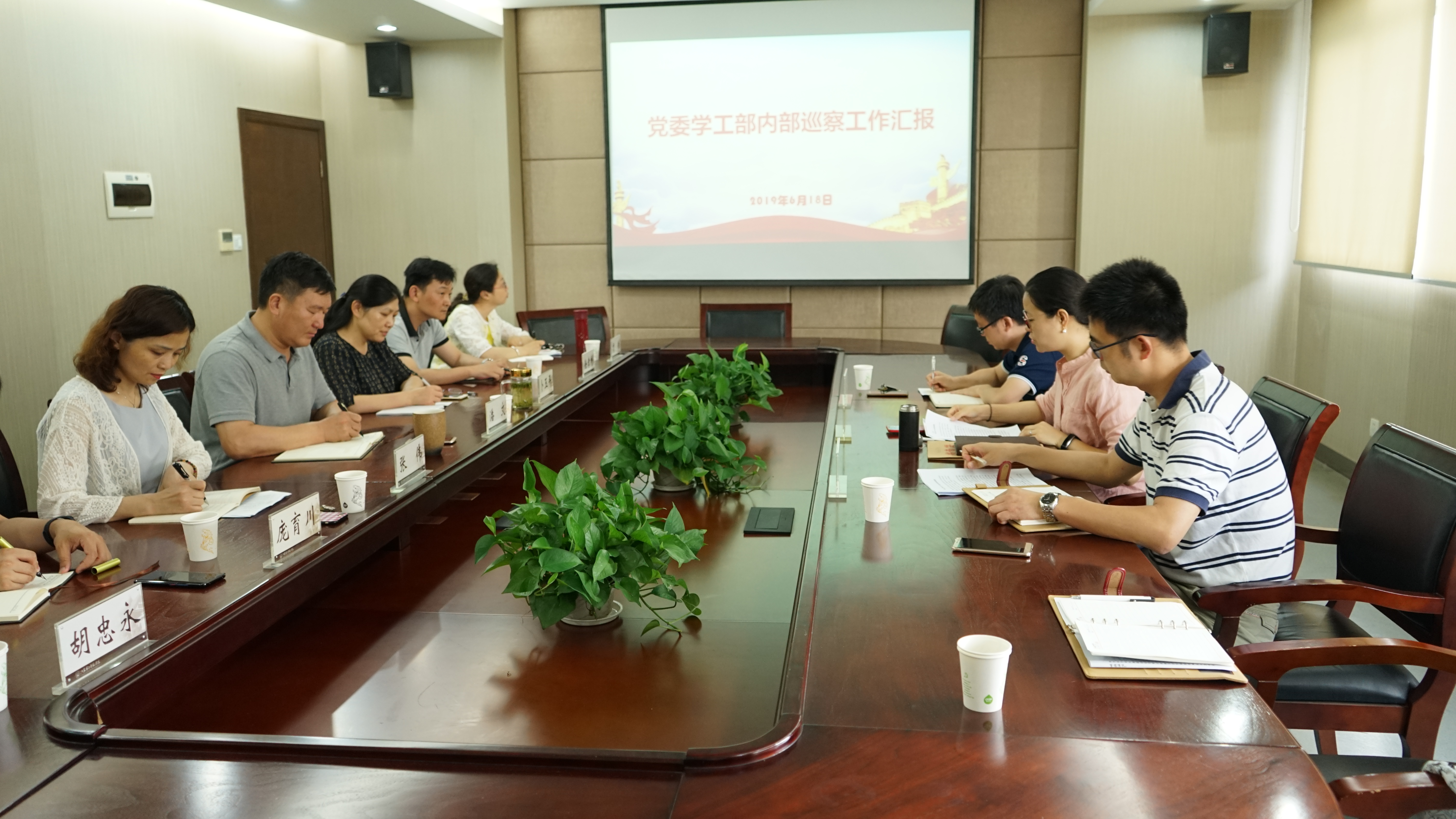 6月18日下午,学生工作处(党委学生工作部、人民武装部)内部巡察工作汇报会在教科研楼505会议室召开。学校党委首轮内部巡察工作第二巡察组组长、校党委副书记潘文及小组全体成员,学工处领导班子全体成员参加会议。汇报会由学工处处长刘莹主持。