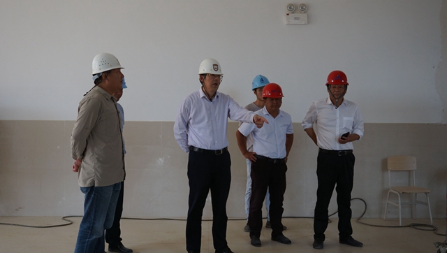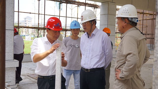 6月23日上午,党委书记王仁雷、党委副书记潘文赴石湫校区视察建设进展情况,基建处主要负责同志陪同视察。