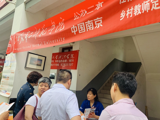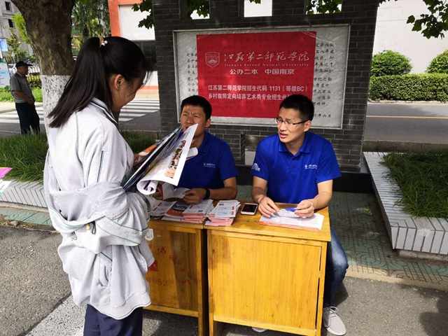 6月25日,外院13名老师组成招宣队赴南通市区及六县开展2019年招宣工作。招宣队伍兵分三路进行,一路由黄晓波、郭大光率队在江苏省白蒲高级中学、如皋市第一中学等七所高中招宣,另一路由张婧老师率队江苏省平潮高级中学、海门一中等十所中学招宣,还有一路由张芳、何丽娜组成分赴如东县马塘中学、掘港中学等四所高中开展现场招宣。三路小分队现场火爆,受到考生家长欢迎。