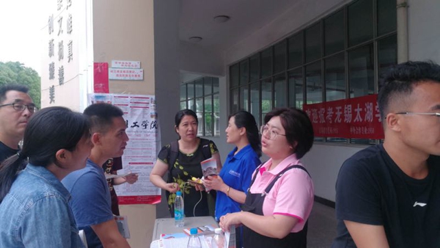 城环学院招宣队由16位老师组成,龚小辉老师作为常州市招生咨询老师留守学校,接受考生的电话咨询;9位老师由院长孙汉群率领赴常州市区进行招宣工作,6位老师由总支副书记李双江率领赴溧阳市进行招宣工作。6月25日,招宣队参加了在常州大学举办的常州市招生咨询会,进入到横林高中、常州五中、田家炳中学、溧阳中学、光华中学等8所高中进行招生咨询。