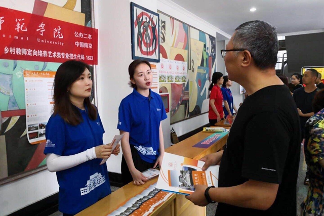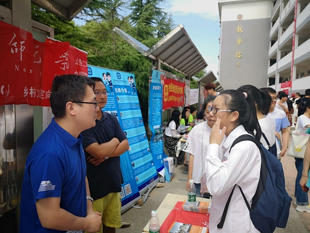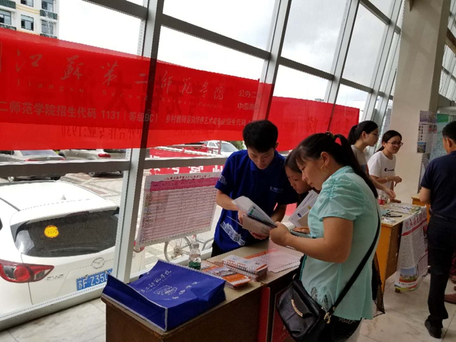 为加大学校招生宣传力度,提升招生宣传效果,吸引更多优质生源报考我校,6月25日,我校组织招宣小分队分赴省内各地进行招生宣传。宣传员们深入浅出地剖析了我校的特色、优势以及招生政策等,鼓励广大学生报考我校,现场解答考生及家长有关志愿填报以及到我校后学习生活等方方面面的问题,受到了家长与学校的一致好评。