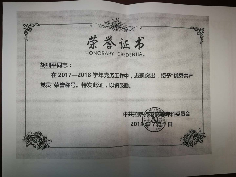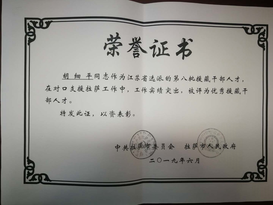 辛勤的汗水换来累累硕果。张其飞、胡细平在对口支援拉萨工作中,工作实绩突出,被拉萨市委市政府评为“优秀援藏干部人才”;胡细平被拉萨师范高等专科学校授予“优秀共产党员”荣誉称号。希望全校师生向两位援藏干部学习,也祝愿他们返回学校后,不忘初心、牢记使命,继续发挥先锋模范作用,在今后工作中取得更大成绩。
