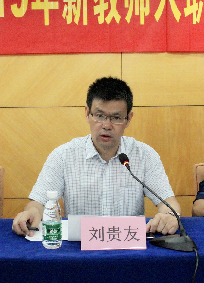 刘贵友结合学校特点解读了“师者,传道授业解惑”的具体内涵,并鼓励新教师要站稳课堂、抓住科研“保鲜期”,不断创新,尽快成为一名合格的教师。