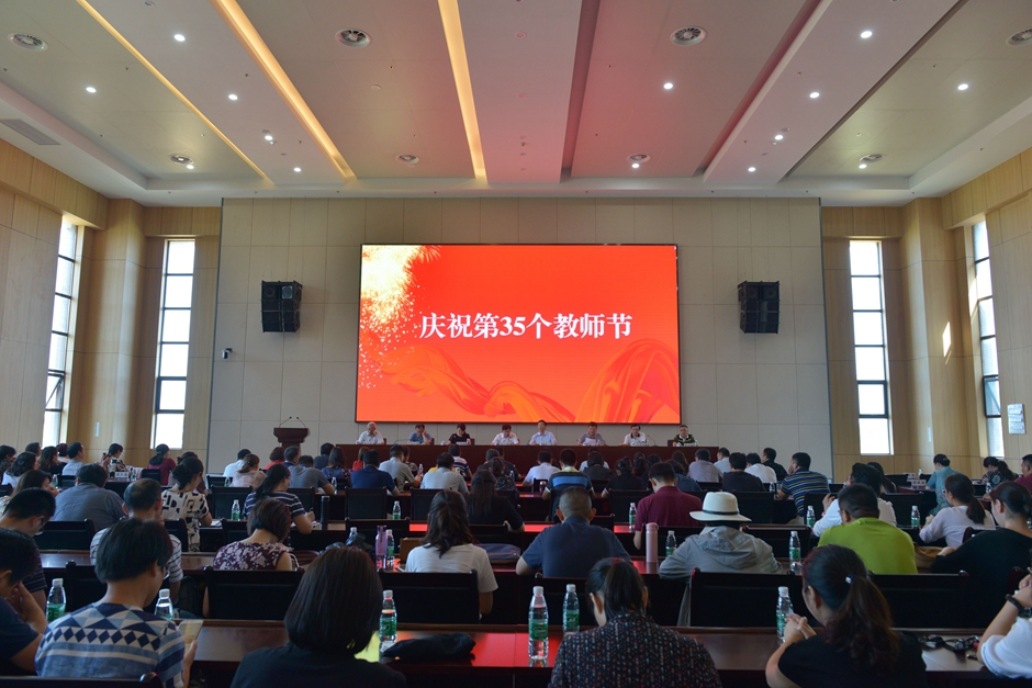 金色九月,硕果累累。9月10日,我院在石湫校区敬业楼107报告厅隆重举行庆祝第35个教师节大会。党委书记王仁雷,院长王建,院领导刘继红、潘文、祝兴成、王晓天、姚振标、陈金如出席大会。从事教育工作满30年人员,在院工作30年人员,2019年各类人才项目获得者,各部门、各二级学院主要负责同志和骨干教师代表、新进教师代表、优秀教师代表参加大会。王建主持会议。