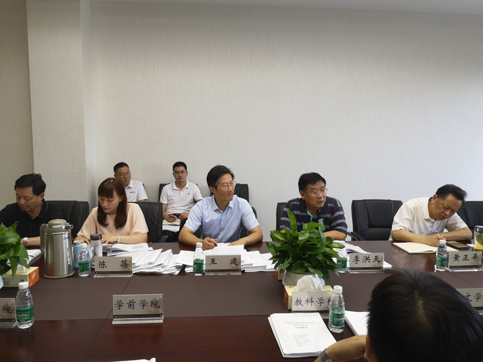 99日下午,学校召开师范类专业认证申请材料专家现场评审会。由校长王建,江苏省教育现代化研究院院长李洪天、办公室主任黄正平,校教学督导和相关二级学院负责人共同组成的评审专家组,在首轮评审基础上,对我校9个师范专业的认证申请材料进行了认真审阅。同时,各专业认证工作团队在分会场与相关职能部门围绕迎评数据等开展热烈研讨。随后,评审专家组向各专业认证工作团队反馈了评审意见。