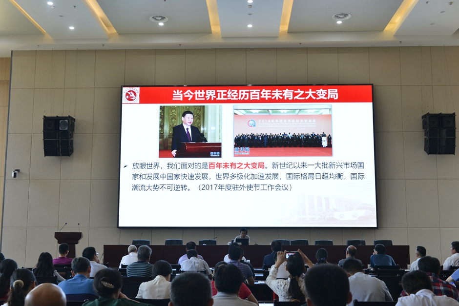潘文作总结讲话。他指出,本场报告紧扣“初心和使命”的主题,思想深邃、观点鲜明、语言生动,对我们学习习近平新时代中国特色社会主义思想、深刻领会习近平外交思想的精髓有着很好的启发和指导作用。我们要进一步增强“四个意识”、坚定“四个自信”、做到“两个维护”,以新担当新作为担负起新时代的新使命。
