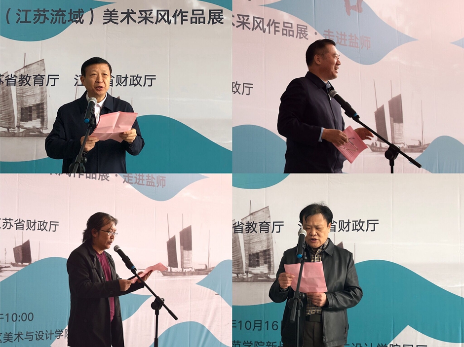 李晓东作为嘉宾代表致辞。他对我校美术学院教师们从不同审美角度、用独特的绘画语言表现当代的社会风貌,用壮丽画卷讲述运河故事、表达运河精神表示赞叹。他说这也将激发盐城市美术家深入生活的创作激情,为运河文化带建设增光添彩。